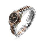 Introducing the Rolex Datejust 29mm Steel and Rose gold Diamond Dial watch. The epitome of class and luxury, this stunning piece features an 18ct rose gold fluted bezel, a Steel & Rose Gold bracelet with a black diamond dot dial.