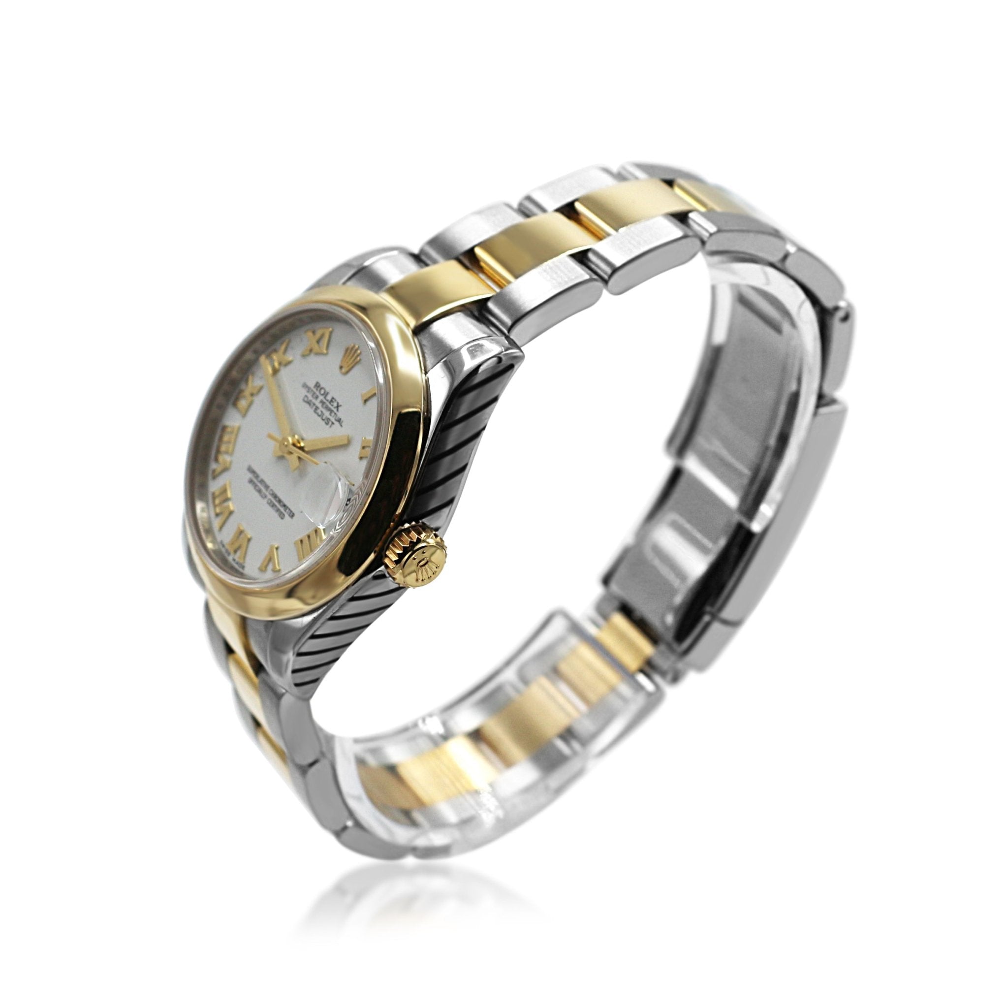 Introducing the Rolex Datejust 31mm watch: a timeless combination of modern sophistication and classic elegance.Ā  This exquisite watch is crafted from stainless steel, 18ct yellow gold with a white dial featuring delicate Roman numerals.